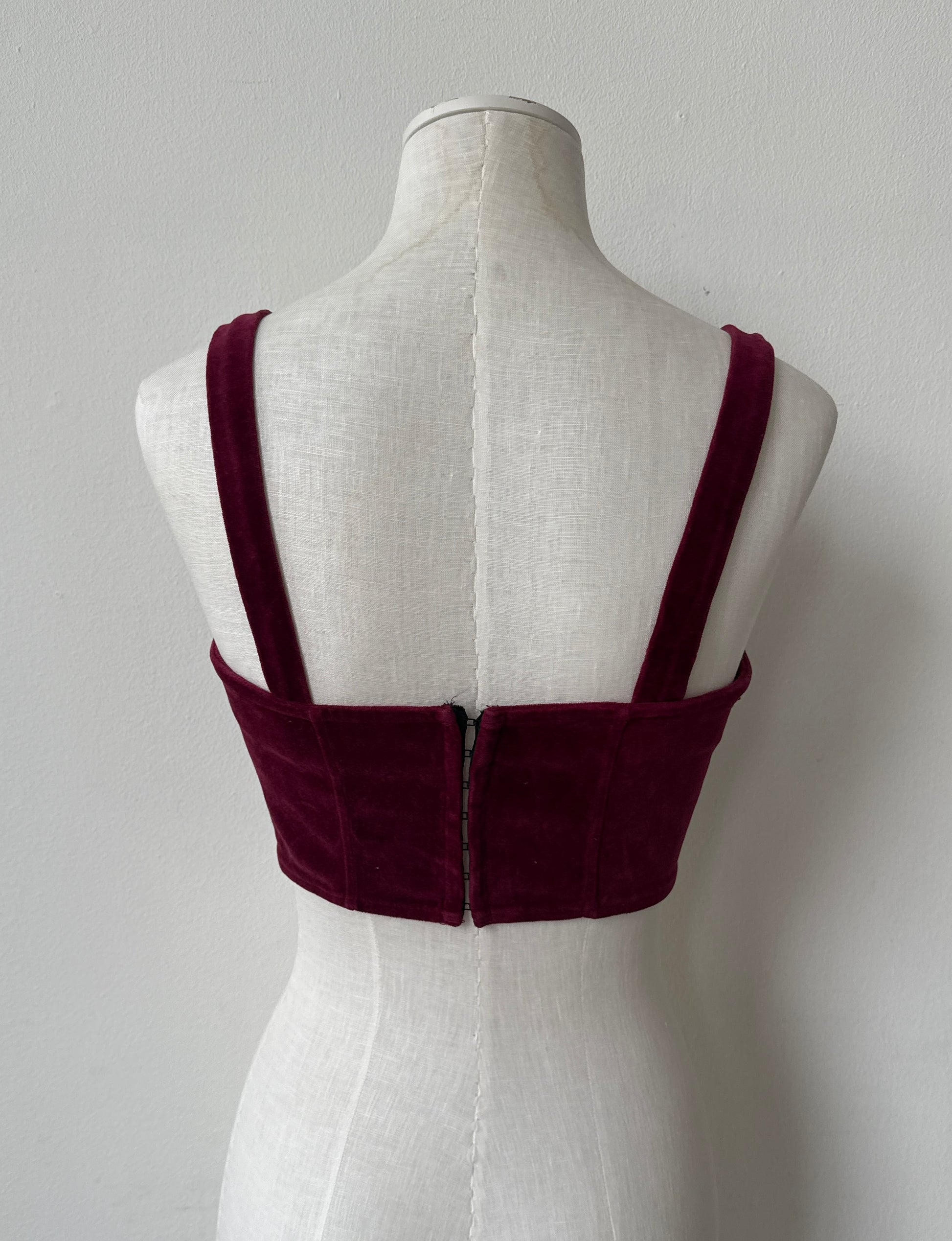 Blumarine 1990 Velour Burgundy Corset Bra Top with Beads