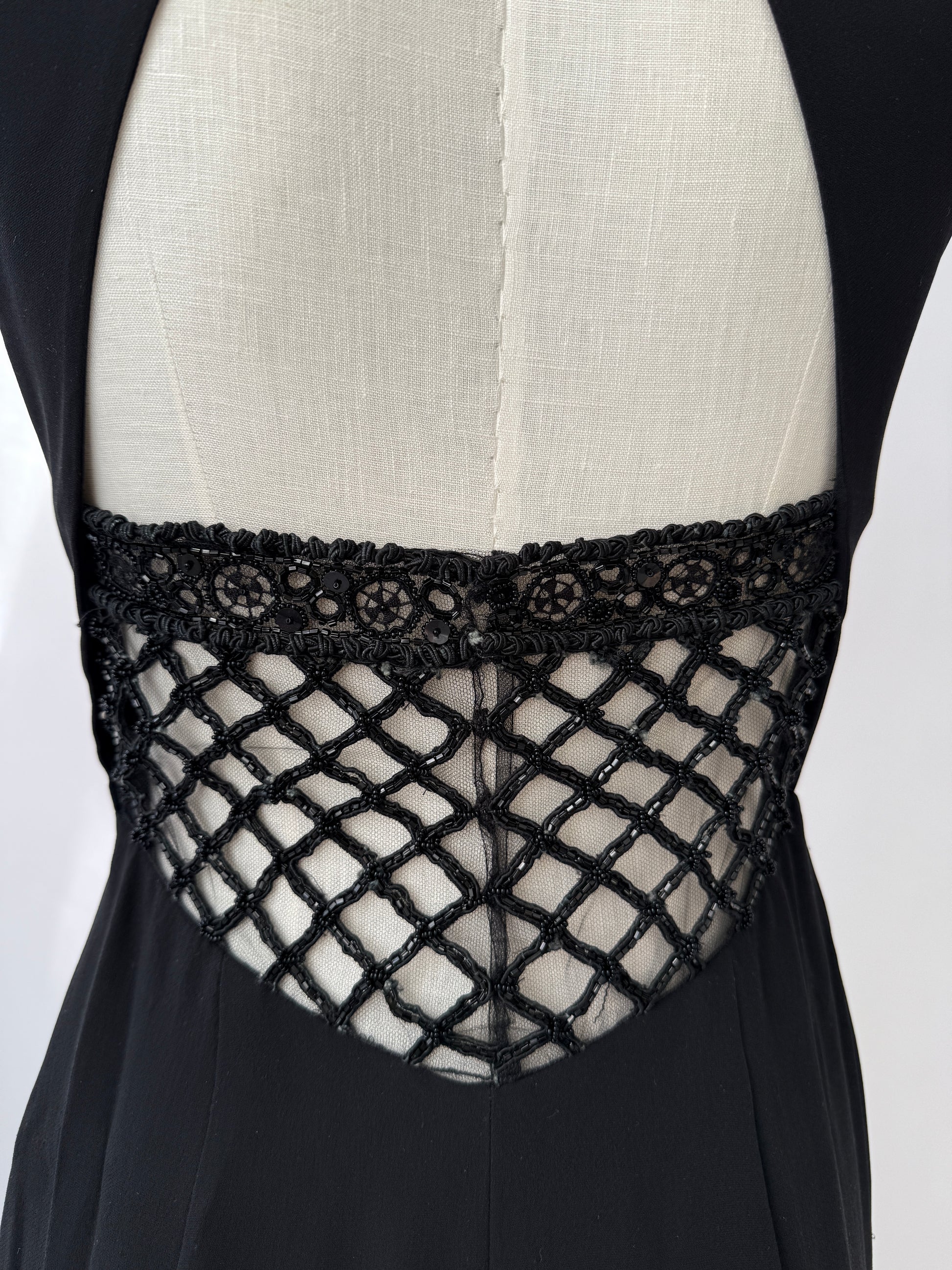 Valentino F/W 2001 Runway Black Silk Beaded Backless Mini Dress (S)